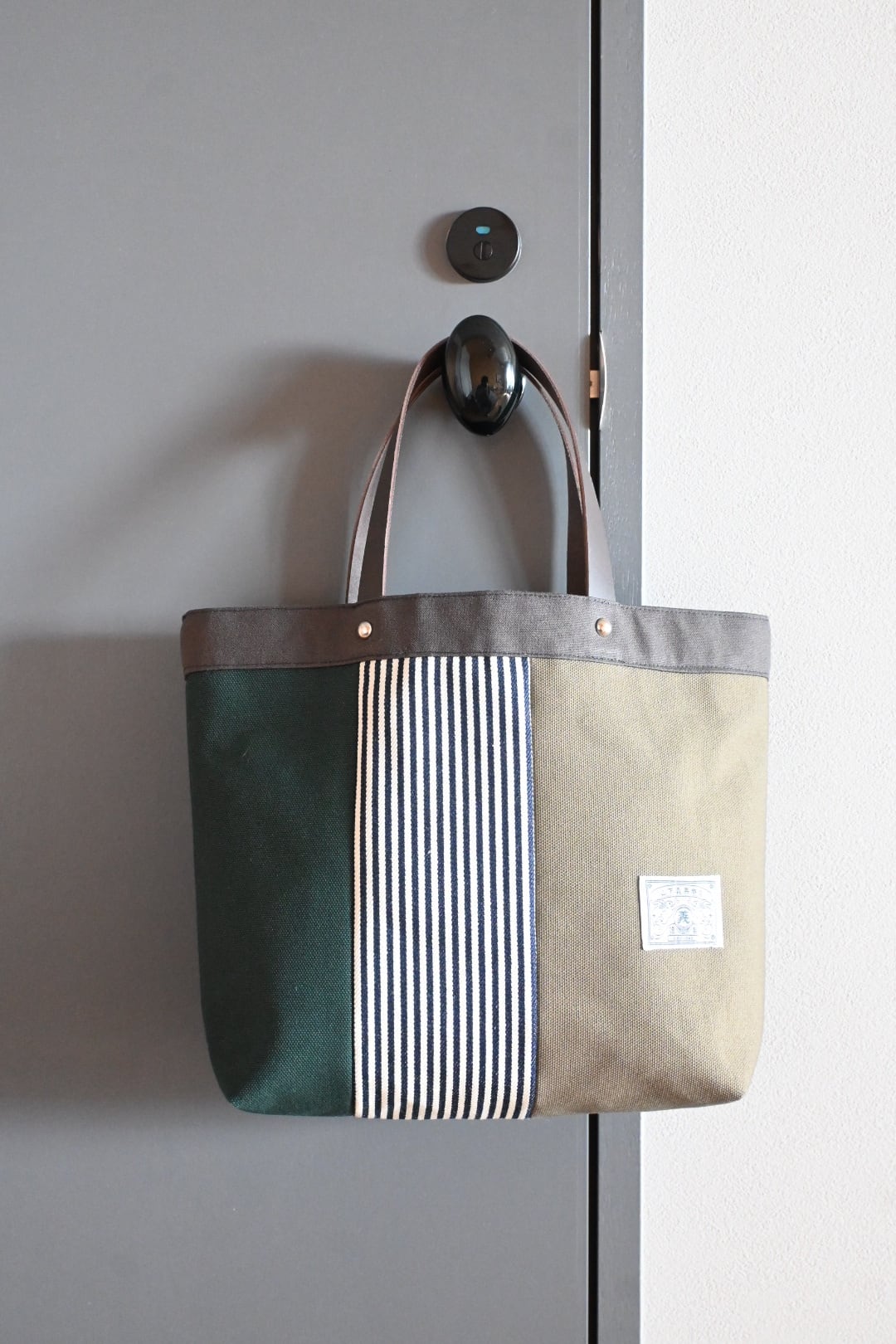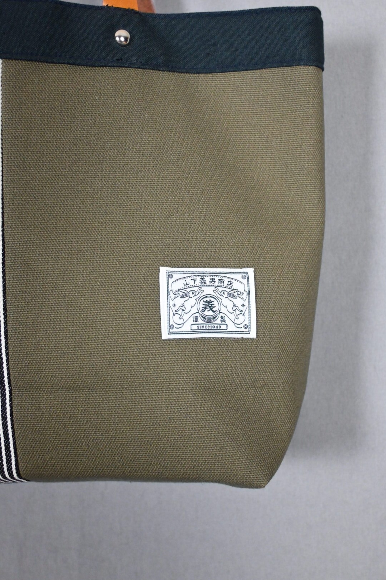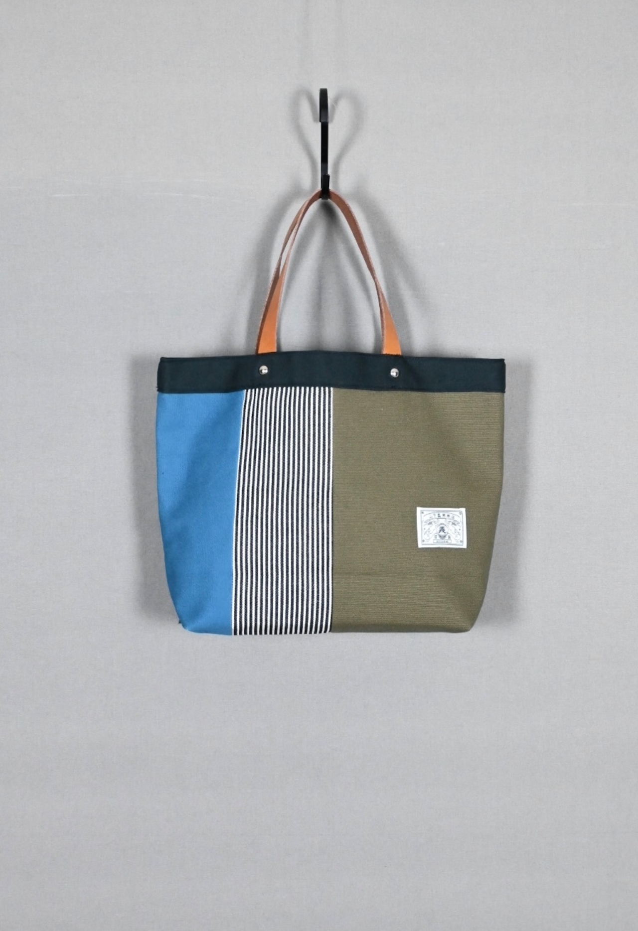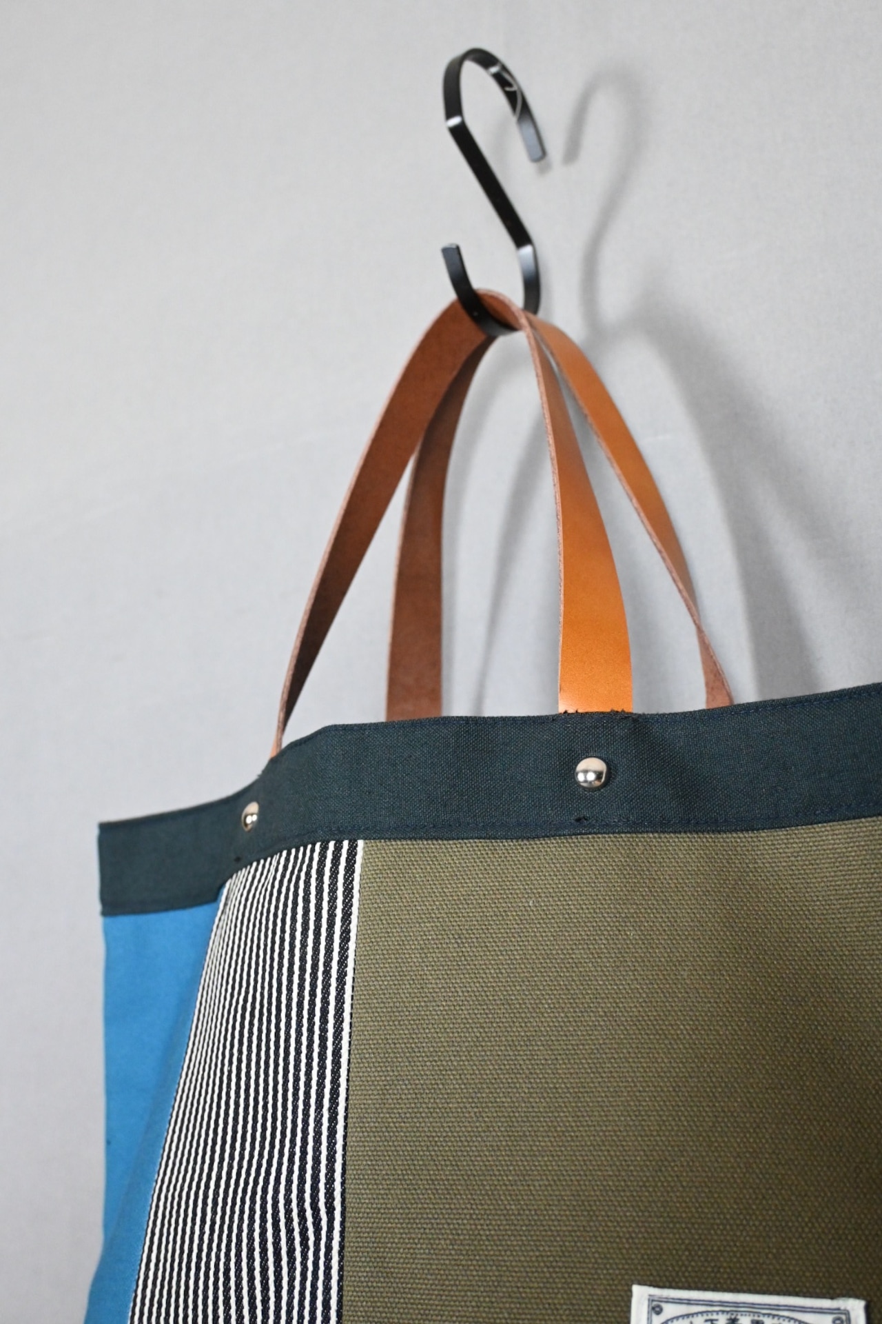 帆布3枚とヒッコリーデニムを繋ぎ合わせて作製したオリジナルトートバッグです。