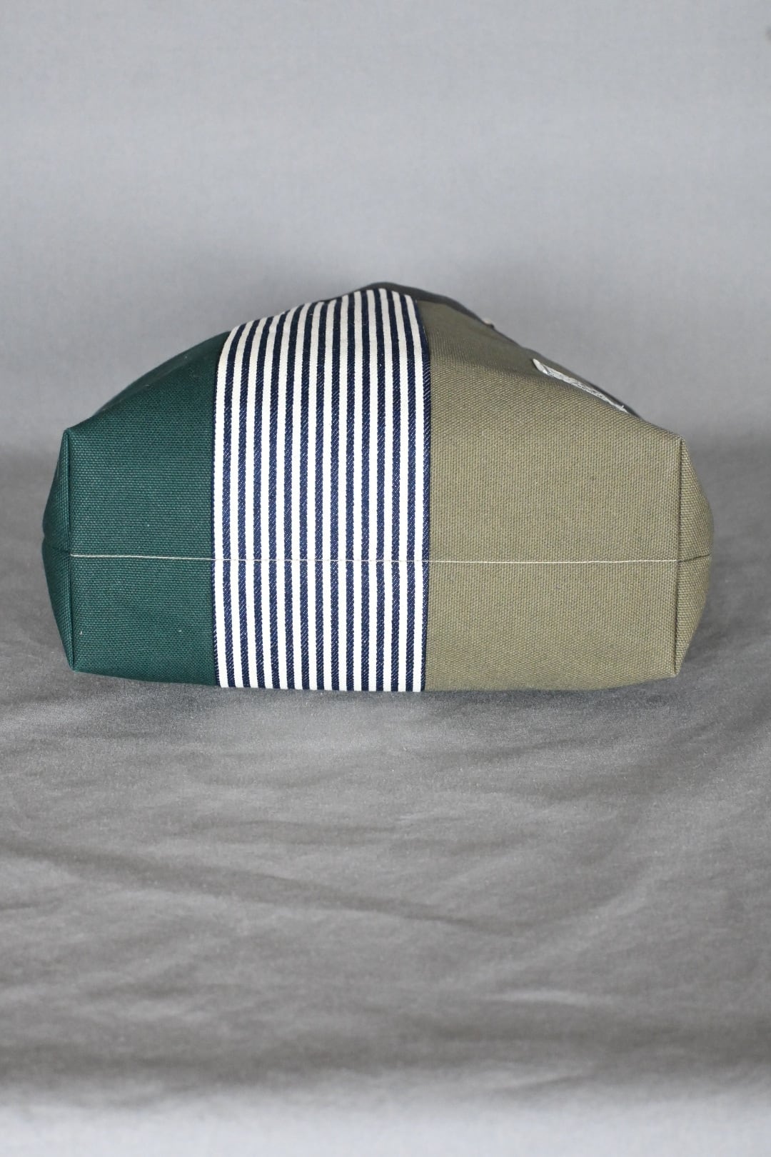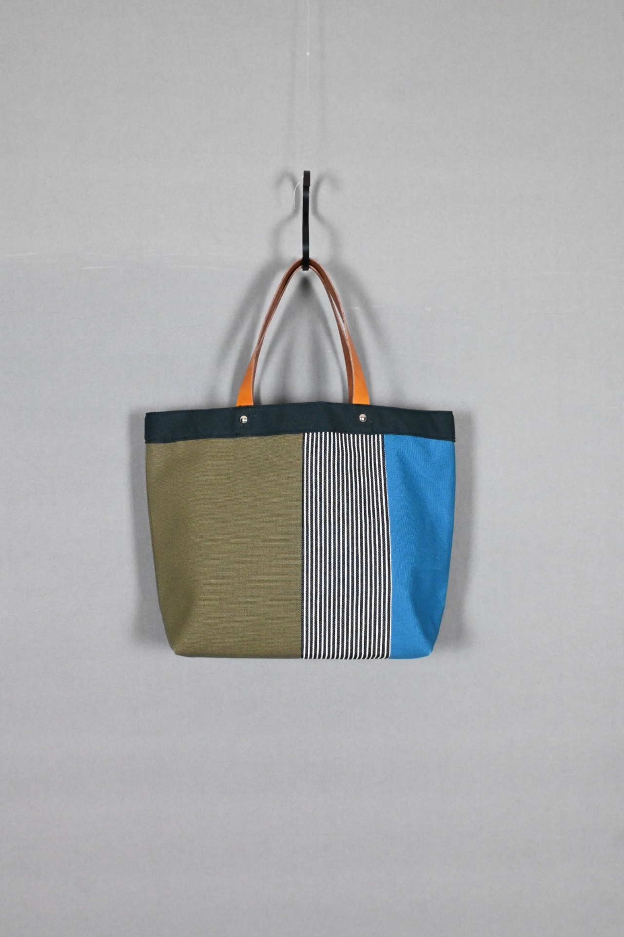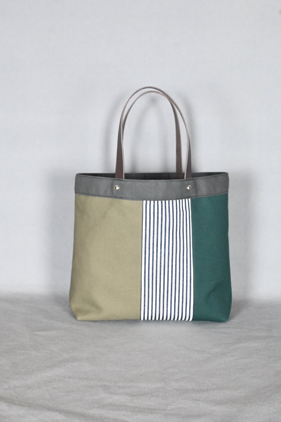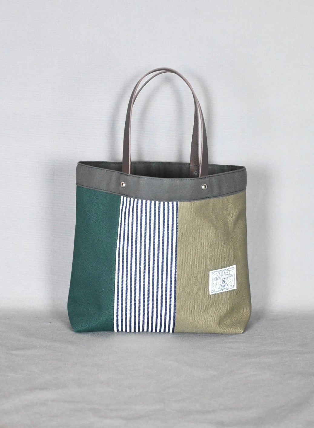 帆布3枚とヒッコリーデニムを繋ぎ合わせて作製したオリジナルトートバッグです。