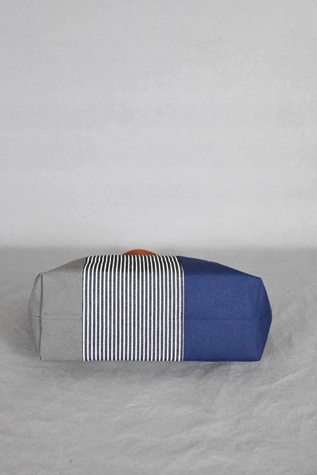 カラーはグレー、ヒッコリー、ネイビーを組み合わせ、上部のふちをチャコールグレーにすることで全体の色のバランスをとっています。