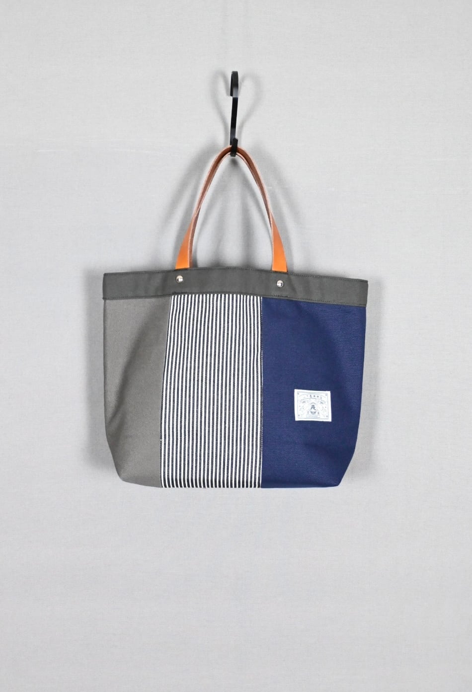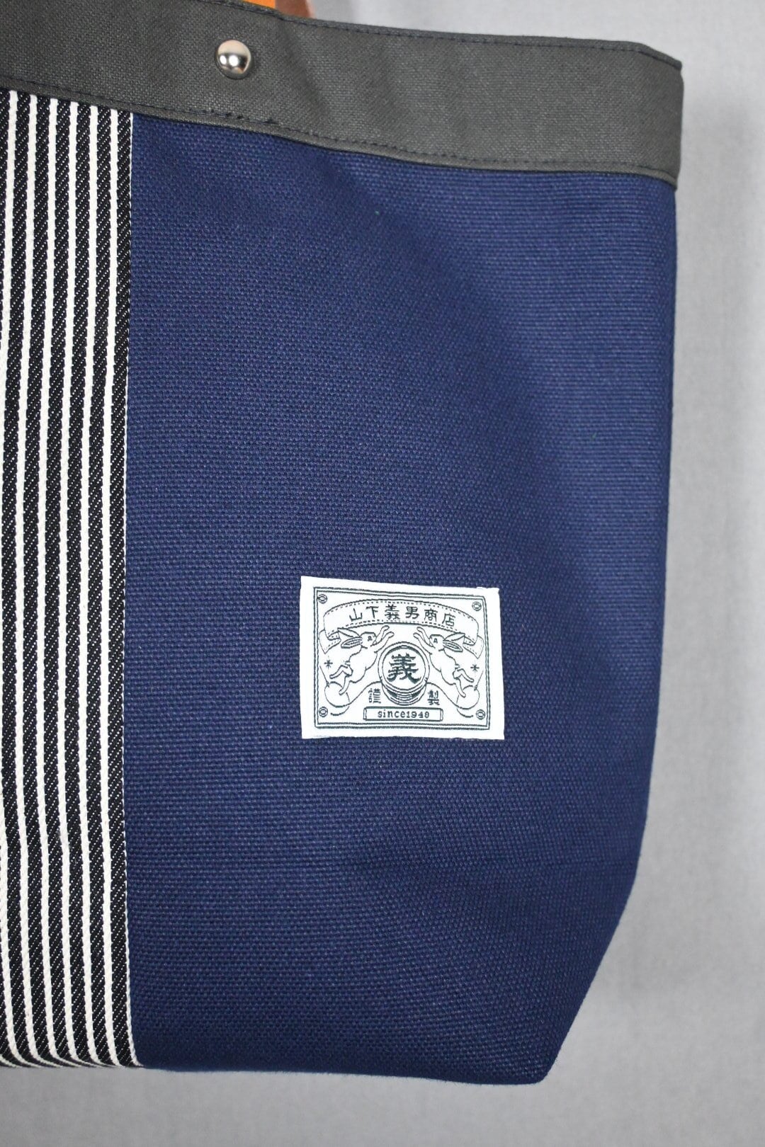 帆布3枚とヒッコリーデニムを繋ぎ合わせて作製したオリジナルトートバッグです。