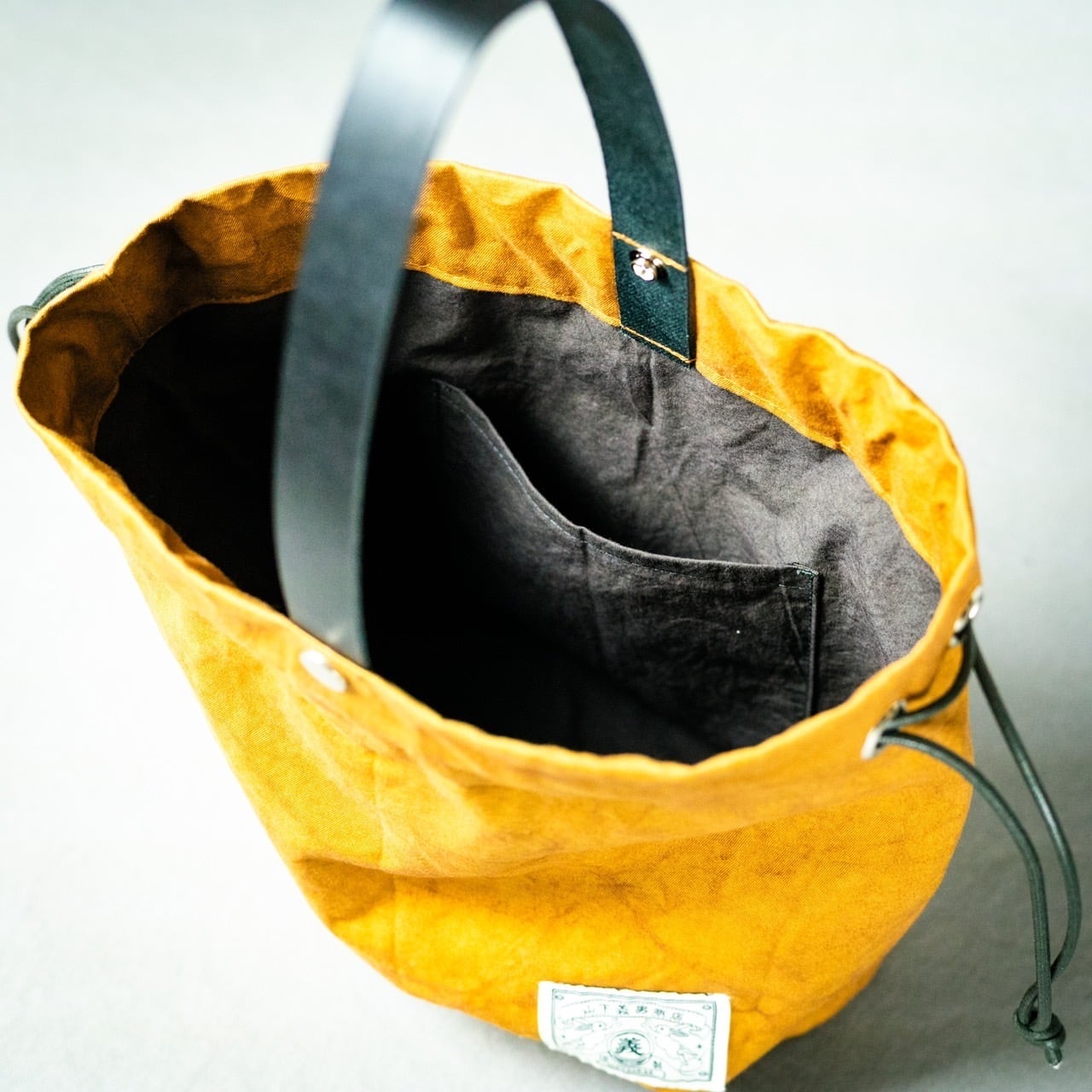 機能性とデザイン美を求め、何度も試行錯誤を重ねて出来上がった理想の巾着バッグです。